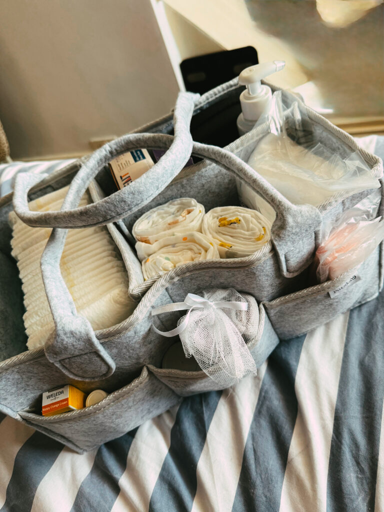 If I could only recommend one thing to new mums, it would be a nappy caddy. I had two, one in the bedroom and one downstairs, and they honestly saved my sanity.